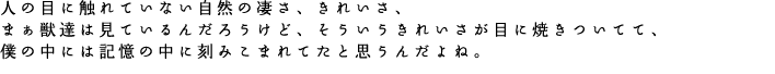 (K)いや全然。僕がこれを始めたのは、45、46歳の頃です。田舎暮らしをしてたけど、その時はこういう発想はしていなかった。ただ、山歩き、山遊びをしてたから、そうねぇ、自然の植物の凄さっていうのは、その時に知ったのかなぁ。何ていうのだろう。例えば春に山に入るとね、今、林業がけっこうさびれてて、山に入って森をちゃんときれいにしていないんだよね。だから野生がはびこってて、ツル性のものが山の入り口にあって。僕はそれを越えて行こうと思って、ツタのすだれみたいなものを自分でくぐって、顔を上げた途端に目の前に大木があって、それに野生のフジがからまってて、それがさ、ものすごくきれいで、結局もう人が山の中に入らないから見られていない、人に視感されていないというか、まぁ人に見られていようが同じかもしれないけど、人の目に触れていない自然の凄さ、きれいさ、まぁ獣達は見ているんだろうけど、そういうきれいさが目に焼きついてて、僕の中には記憶の中に刻みこまれてたと思うんだよね。だから、何か自然のすごさ、きれいさに東京に帰っても気がつくようなったし。